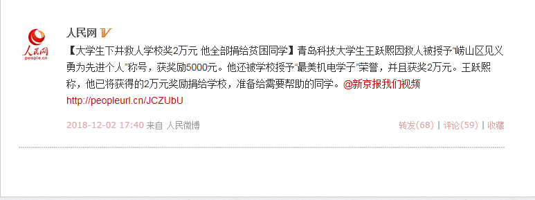 人民微博报道3245澳门新莆京王跃熙见义勇为事迹:网址:新京报我们视频http://peopleurl.cn/JCZUb