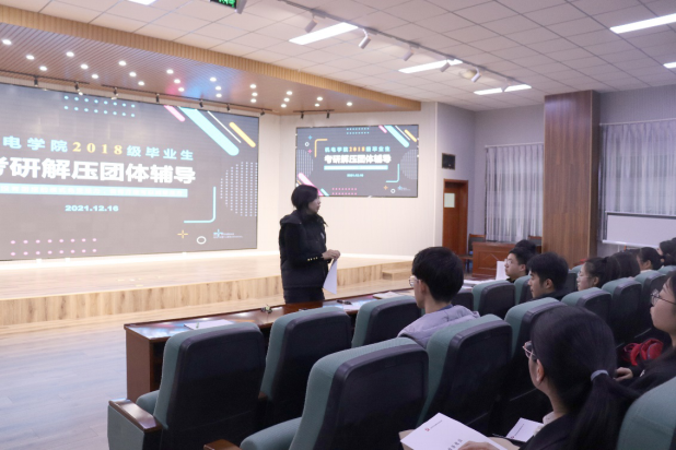为帮助和引导考研学生克服焦虑,正确认识并缓解在考研准备过程中的心理压力,12月16日下午,3245澳门新莆京开展2018级毕业生考研解压团体辅导。会议由3245澳门新莆京2018级辅导员孙坤岩主持,大四考研学生及部分团学干部报名参加此次团体辅导。