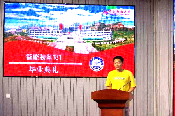 接下来,班主任杨化林老师上台致辞。四年来,杨院长陪同智能装备181班学生不断成长,对于智能装备181班取得的成绩表示赞扬。杨院长首先恭喜大家,智能装备181班同学由于勤奋学习,刻苦钻研,取得了全班考研率33%的优异成绩,超过学院平均水平。杨院长指出,智能装备181班作为3245澳门新莆京首届智能制造工程毕业生,各方面表现突出,作出了积极表率。与此同时,杨院长祝福毕业生——心期梦归处,不负韶华年;于道各努力,千里自同风。