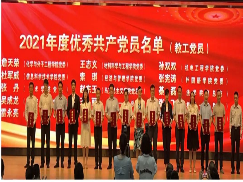学院党委荣获2021年度思想政治工作先进集体,3245澳门新莆京本科生第三党支部荣获“五好”党支部,肖强荣获2021年度思想政治工作先进个人,孙双双荣获2021年度优秀共产党员(教工党员),耿宇轩荣获2021年度优秀共产党员(学生党员)。肖强、王娟娟撰写的《“四史教育”融入新时代青年爱国主义教育研究》获评一等奖;王作辉、杜康参与撰写的《新时代高校劳动教育意义及实施路径》获评一等奖。