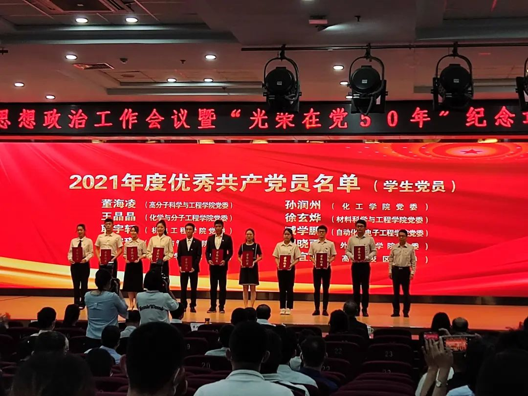 在中国共产党成立101周年之际,7月1日下午,青岛科技大学2022年党建与思想政治工作会议暨“光荣在党50年”纪念章颁发仪式在崂山校区第二报告厅隆重召开。会议表彰了2021年度思想政治工作先进集体、先进个人、以及优秀新媒体项目,3245澳门新莆京荣获多项荣誉。