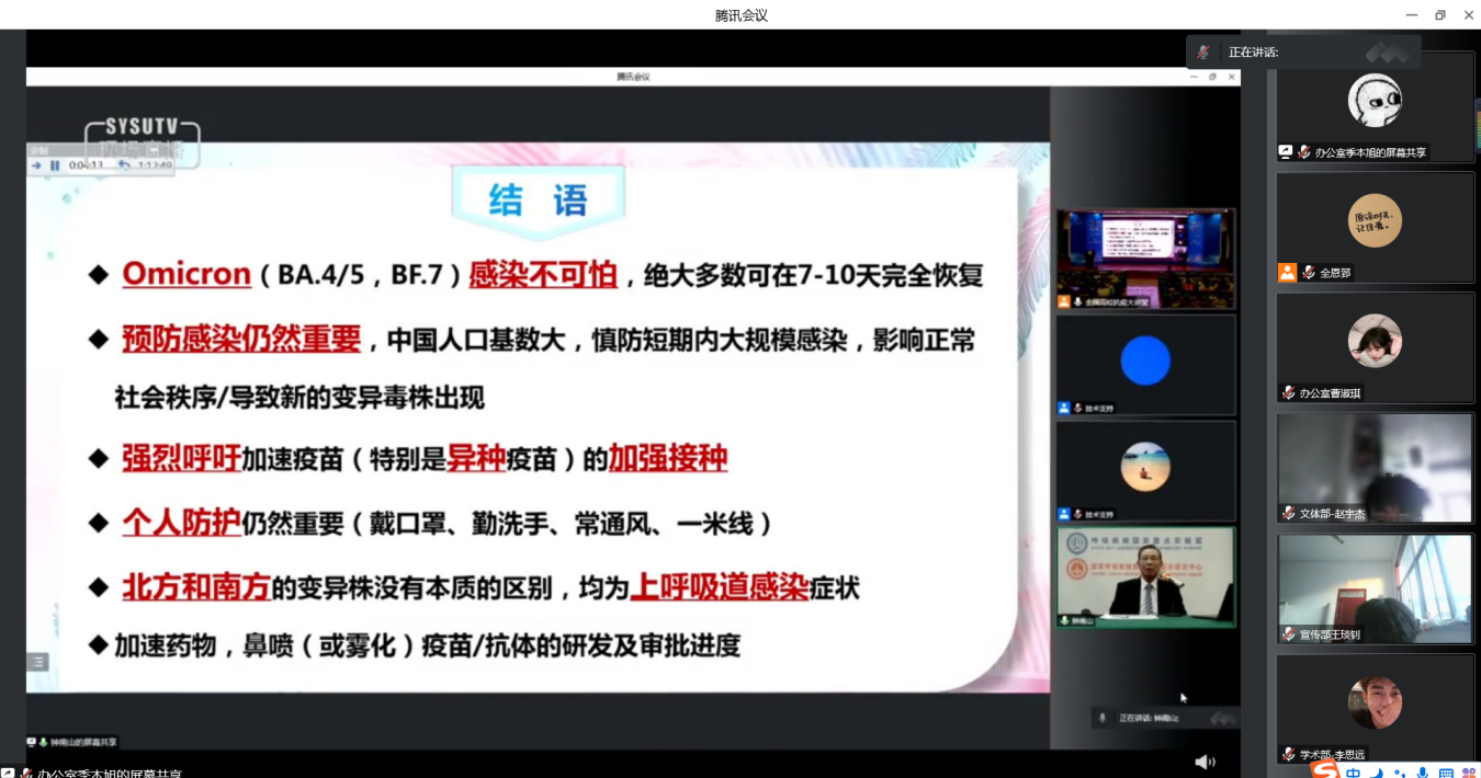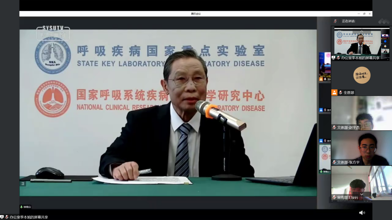 12月15日15时,3245澳门新莆京学生会线上组织观看钟南山院士主讲的全国高校抗疫大讲堂“新冠(Omicron)疫情动态及应对”的讲座。