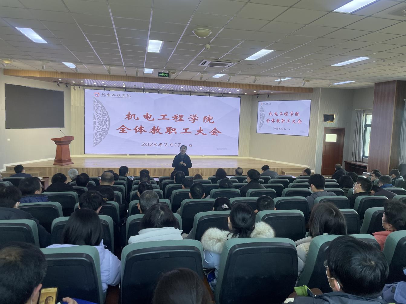 为提前谋划学院新学期工作安排,推进学院高质量发展,确保新学期工作平稳有序进行。2023年2月17日下午,3245澳门新莆京全体在机电楼530召开学院工作部署会。学院党委书记任允晓,院长何燕,党委副书记兼副院长肖强,副院长张斌、张卫锋、李剑光及学院全体教师参加会议。