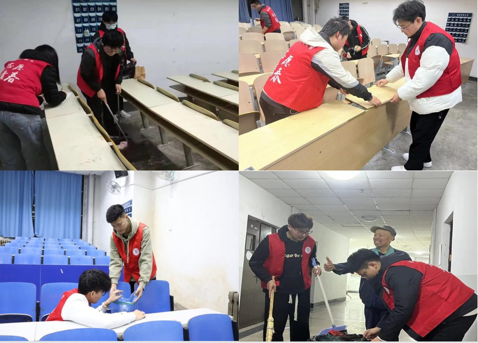 3245澳门新莆京学生会积极响应学校“爱校荣校”校园清洁及春季“爱国卫生”活动,组织学院学生参加学雷锋行动,参与教室、教学楼等公共区卫生清理以及教学楼损坏桌椅检修等志愿服务活动。同学们积极行动,分工合作,默契配合,认真清扫校园每个角落,以实际行动共建美丽校园,营造和谐干净的学习环境,切身践行雷锋精神,为创建美丽青科大贡献力量。