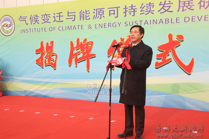 1月8日上午,气候变迁与能源可持续发展研究院(以下简称“气候与能源研究院”)揭牌暨蓝谷研究大楼启动仪式在青岛蓝谷举行。中国工程院原副院长、气候变迁与能源可持续发展研究院名誉院长谢克昌院士,青岛市委常委、市委高校工委书记、市教育局局长、市总工会主席邓云锋,青岛市科技局局长姜波,青岛蓝色硅谷管理局党委书记、即墨区委书记张军,青岛市气象局局长顾润源,青岛市发改委副巡视员赵华梅,青岛科技大学校长、气候变迁与能源可持续发展研究院院长马连湘,青岛科技大学党委副书记李庆领,北京科技大学校长张欣欣,太原理工大学校长黄庆学院士、副校长吕永康等出席仪式。长江学者、“气候与能源研究院”执行院长王戈主持揭牌仪式。