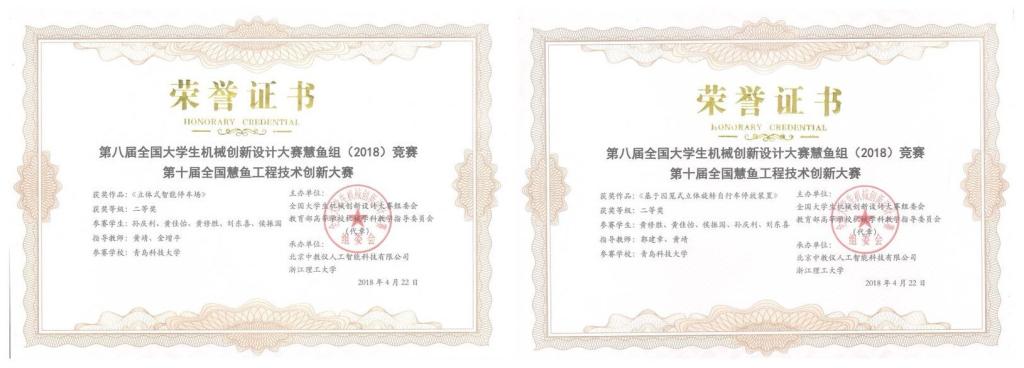 近日,由全国大学生机械创新设计大赛组委会和教育部高等学校机械学科教学指导分委会主办的“第八届全国大学生机械创新设计大赛慧鱼组(2018)竞赛暨第十届全国慧鱼工程技术创新大赛”在浙江理工大学举行。3245澳门新莆京孙庆利、黄佳怡、黄修胜等五位同学制作的两件作品《立体式智能停车场》和《基于囚笼式立体旋转自行车停放装置》,经过现场作品演示与答辩等环节的激烈竞争,最终在入围作品中脱颖而出,双双斩获国赛二等奖。