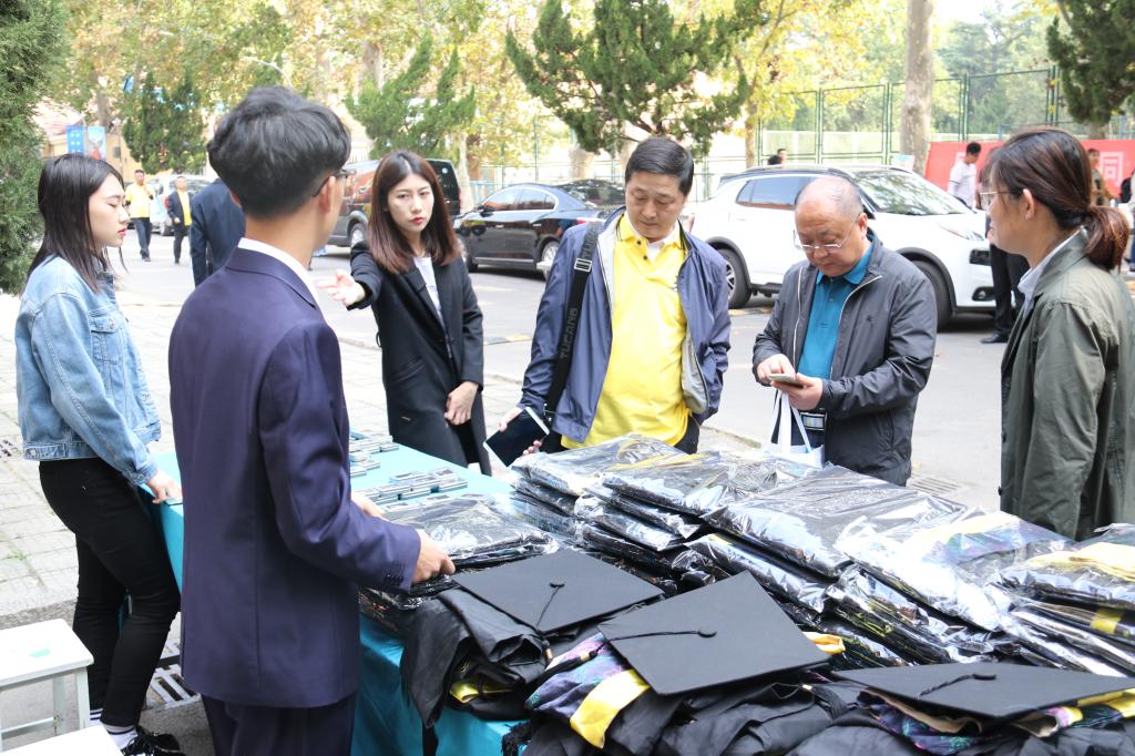 最后,与会领导与穿着学士服的橡机、化机专业的88届校友们合影留念。