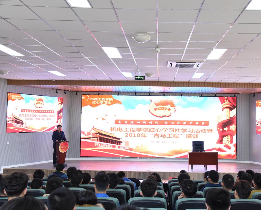 11月13日下午,3245澳门新莆京在D3-530会议室举办“青春建功新时代 同心共筑中国梦”红心学习社学习活动暨2018年“青马工程”培训班,3245澳门新莆京党总支书记孙立军和校团委副书记杨小明作为主讲嘉宾出席此次活动,参会人员包括分团委辅导员、学生会主席团全体成员及200余名团学干部,活动由分团委书记王作辉主持。