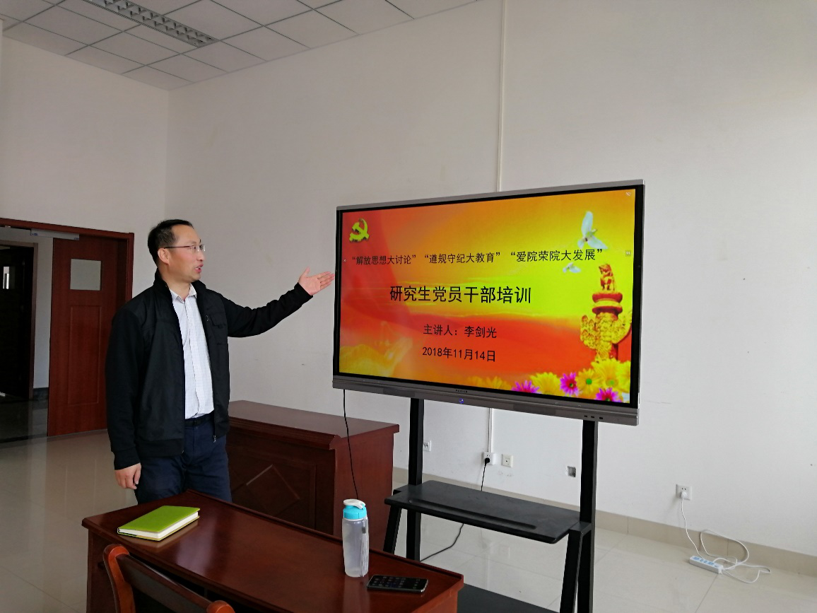 11月14日上午10:10,3245澳门新莆京研究生党员、学生干部培训会议在崂山校区机电楼529会议室举行。学院研究生辅导员李剑光老师、曹科伟老师,研究生党员、各年级班委以及院研究生会成员参加了会议。