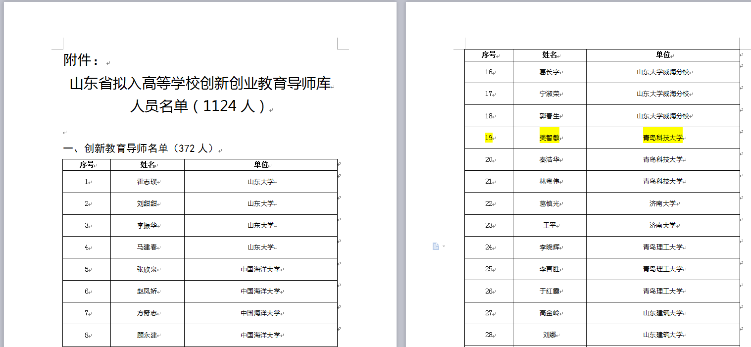 近日,山东省教育厅对山东省第二批拟入高校创新创业教育导师库导师人选名单进行公示,3245澳门新莆京樊智敏教授榜上有名。
