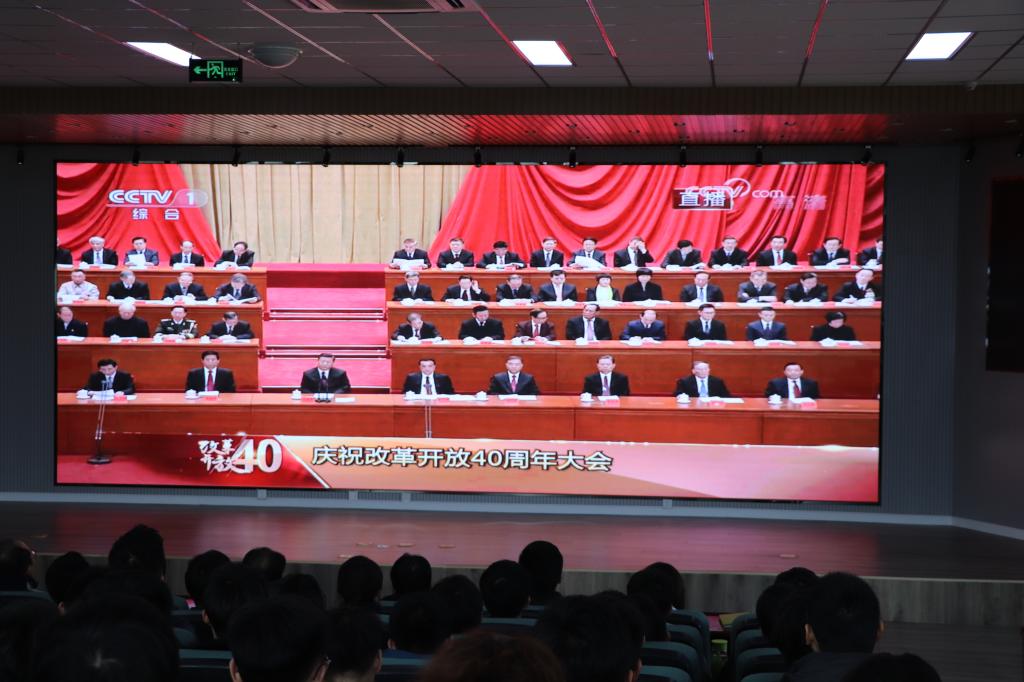庆祝改革开放四十周年大会于12月18日上午在北京人民大会堂隆重召开,习近平总书记发表了重要讲话。学院采取集中学习和各自学习的方式结合。学院党总支在3245澳门新莆京楼530会议室集中收看庆祝改革开放40周年大会,3245澳门新莆京领导班子参加了活动,学院教师代表、党员代表、团、学代表、入党积极分子代表、研究生代表、班级代表共190余人参与了观看学习。各党支部、教研室、班团也在办公室、教室、宿舍分别组织了观看。