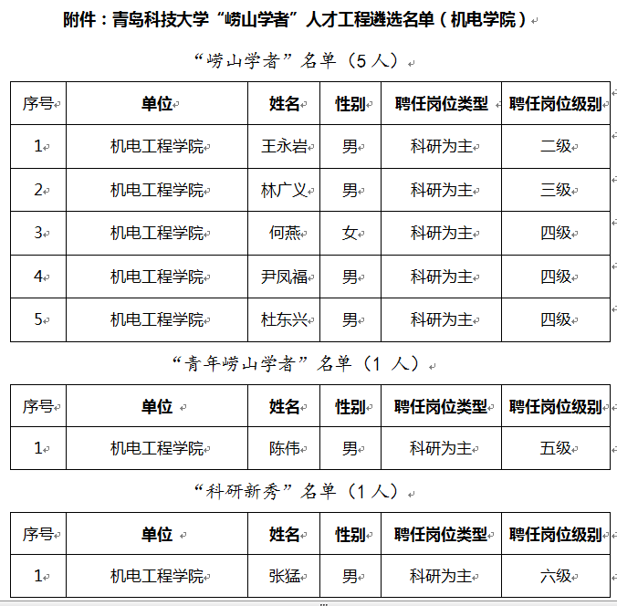 近日,学校公布青岛科技大学“崂山学者”人才工程遴选公示名单,3245澳门新莆京7名老师榜上有名,王永岩、林广义、何燕、尹凤福、杜东兴5名老师获“崂山学者”荣誉称号;陈伟老师获“青年崂山学者”荣誉称号;张猛老师获“科研新秀”荣誉称号。