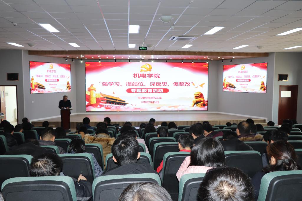 按照《中共山东省委教育工委山东省教育厅关于在全省教育系统迅速开展“强学习、提站位、深反思、促整改”专题教育活动的通知》精神和学校安排,全面提升新莆京官网教职员工的政治意识、规矩意识、纪律意识,切实加强管理、规范办学,努力推动学院高质量发展,3月5日下午,3245澳门新莆京在机电大楼530会议室开展“强学习、提站位、深反思、促整改”专题教育活动,活动由党总支书记孙立军主持和领学。