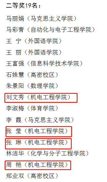 近日,学校公布了青岛科技大学2016/2017、2017/2018学年度教学效果优秀奖获奖名单,3245澳门新莆京6名老师榜上有名,其中邓芳老师与朱惠华老师荣获一等奖,刘文秀老师、张莹老师、张琳老师以及周艳老师荣获二等奖。
