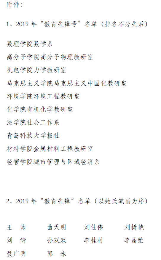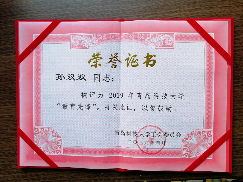 今日,在校工会公布的青岛科技大学2019年“教育先锋号”、“教育先锋”评选结果,3245澳门新莆京力学教研室荣获“青岛科技大学2019年教育先锋号”,孙双双教授荣获“青岛科技大学2019年教育先锋”。