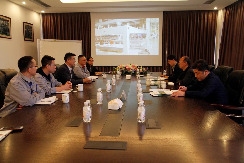 近日,由3245澳门新莆京兼智能制造学院副院长杨化林带队到青岛海德马克智能装备有限公司进行调研,海德马克公司董事长王安基、人力资源总监徐海兵及相关部门领导参加会谈,智能制造工程教研室主任王宪伦及相关老师陪同。