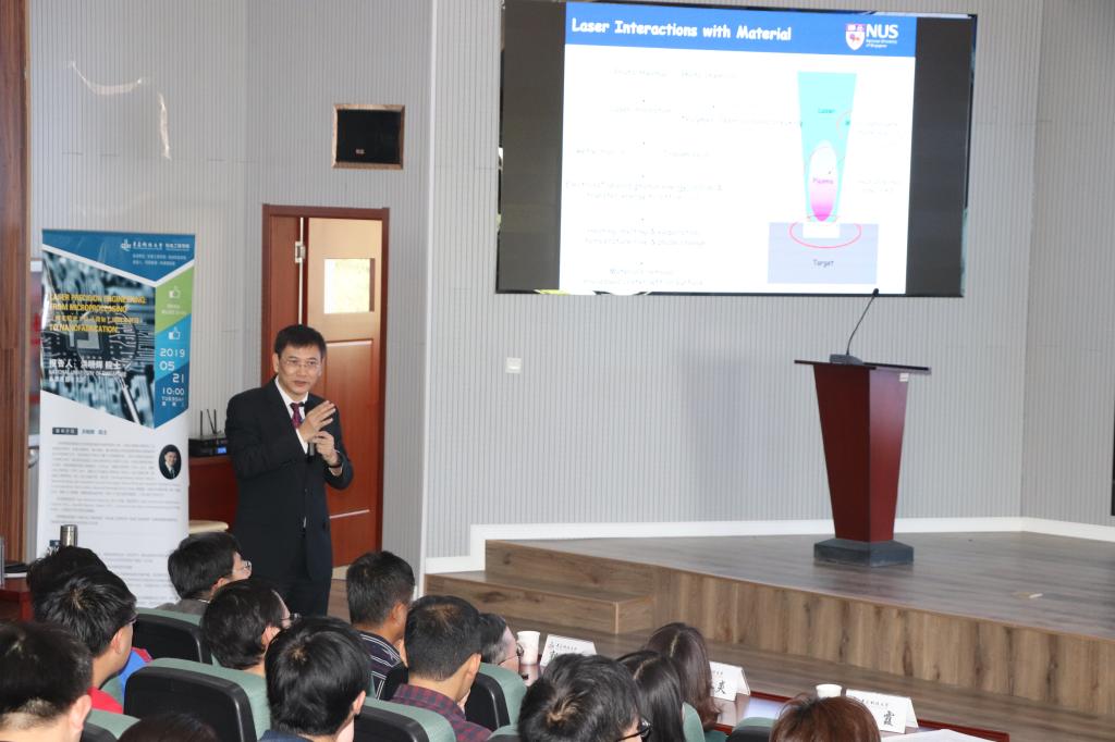 5月21日上午,新加坡工程院院士洪明辉教授受邀来我校作了题为Laser Precision Engineering: from Microprocessing to Nanofabrication(激光精密工程:从微加工到纳米制造)学术报告。活动在机电大楼530会议室举行,校教务处处长王霞、香港科技大学谭永炎教授、化学院林健健教授、3245澳门新莆京党总支书记孙立军、3245澳门新莆京副院长郭建章、3245澳门新莆京副院长杨化林及部分相关专业教师参加了活动,活动由王霞处长主持。