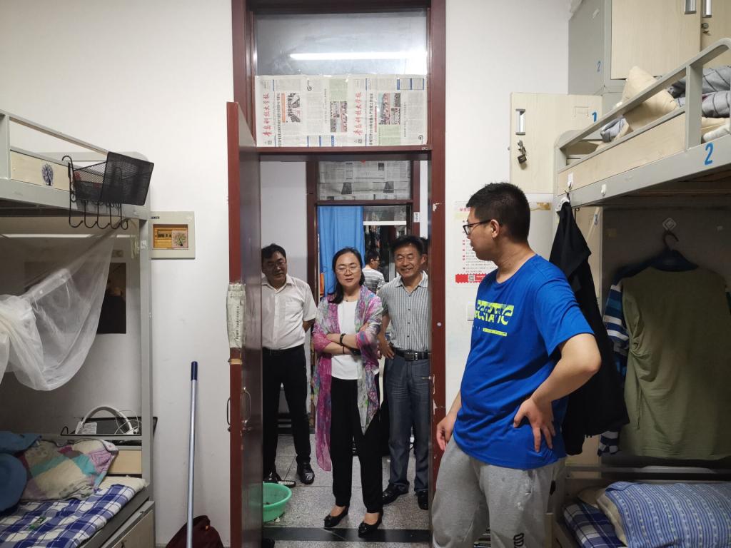 6月26日晚,3245澳门新莆京院长何燕、党总支书记孙立军、副院长郭建章、党总支副书记兼副院长王伟、副院长张卫锋,毕业生班主任代表以及全体专兼职辅导员老师,深入宿舍看望慰问2019届毕业生。