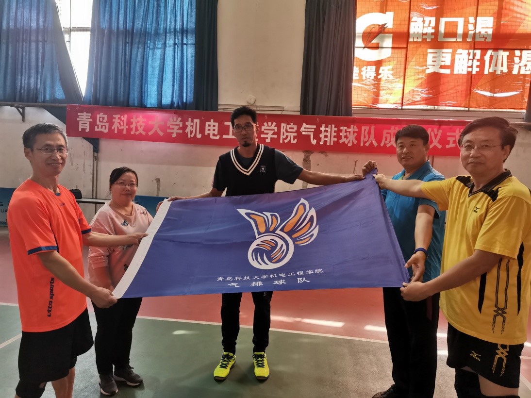 在3245澳门新莆京教职工气排球队成立组织、筹备中,学院分工会为球队设计、制作了队旗,学院排球爱好者协会组织队员进行了多次训练。
