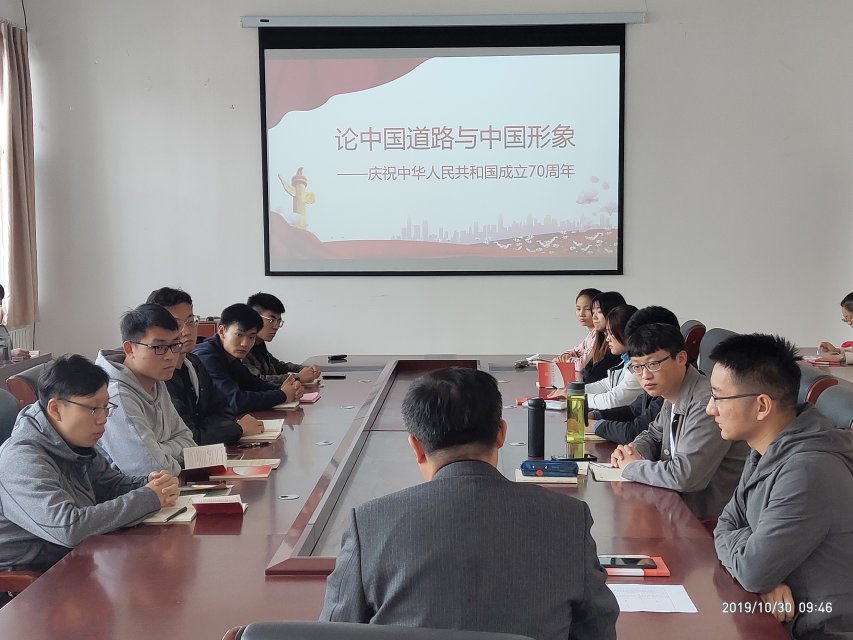 为贯彻落实校党委关于“不忘初心、牢记使命”主题教育工作的要求,进一步发挥党支部在主题教育中的战斗堡垒作用,坚定广大党员的理想信念,厚植宗旨意识,强化行动力量,不断将政治意识、大局意识、核心意识和看齐意识融入工作中,争做政治坚定的楷模、争做为师生服务的表率。10月30日上午,本科生第三党支部开展“不忘初心、牢记使命”主题党日活动,党支部书记王作辉为支部党员上了一堂题为《论中国道路与中国形象》的生动党课。