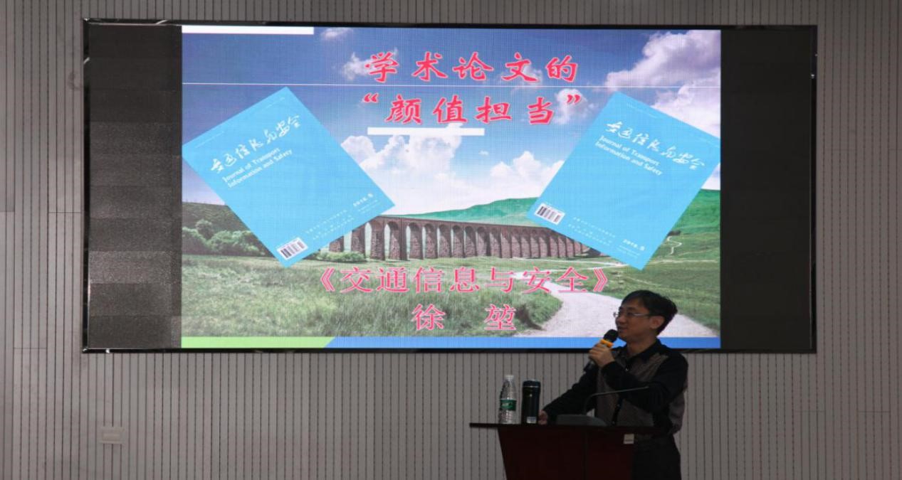 徐堃教授作了主题为《学术论文的“颜值担当”》的演讲。首先,徐堃教授从期刊的发展情况、现状分析、未来重点报道方向、重点专栏等方面对《交通信息与安全》期刊做了简要介绍;之后,徐堃教授主要从如何提升学术论文的“颜值”,综述论文、统计分析类论文、系统研发类论文的常见问题,投稿人与编辑部的沟通技巧三个方面进行讲解。最后,徐堃教授与师生们交流互动。师生们积极提问,徐堃教授从审稿人和期刊编辑的角度,专业详尽地为师生们答疑解惑,师生们都获益匪浅。