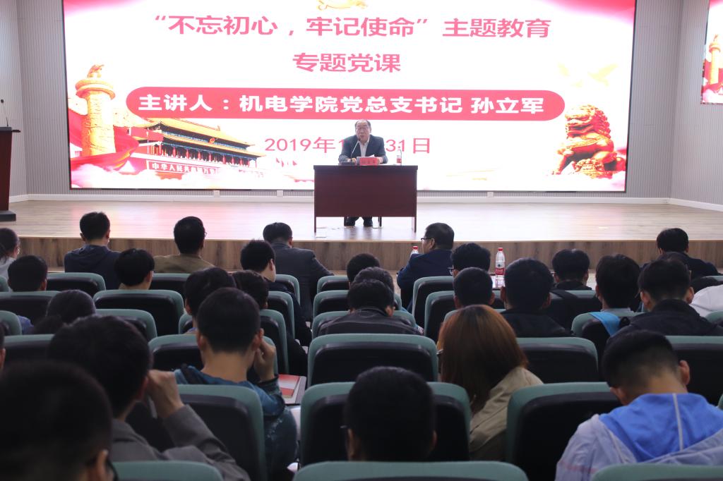 为深入推进“不忘初心、牢记使命”主题教育工作,不断解放思想、把握办学规律、激发奋进动力,10月31日晚,3245澳门新莆京党总支书记孙立军为3245澳门新莆京全体学生党员上了题为《践行党的宗旨,做党和人民满意的好党员、好干部》的“不忘初心、牢记使命”主题教育专题党课。校纪委史勤芳出席了党课,3245澳门新莆京党总支副书记兼副院长王伟及全体专兼职辅导员、全体学生党员参加了党课学习,党课由学院分团委书记王作辉主持。
