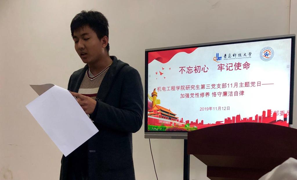 根据学校“不忘初心、牢记使命”主题教育要求,11月12日下午,3245澳门新莆京研究生第三党支部在机电楼529会议室开展“加强党性修养、恪守廉洁自律”专题教育活动,会议由学院党总支副书记兼副院长、支部书记王伟主持。