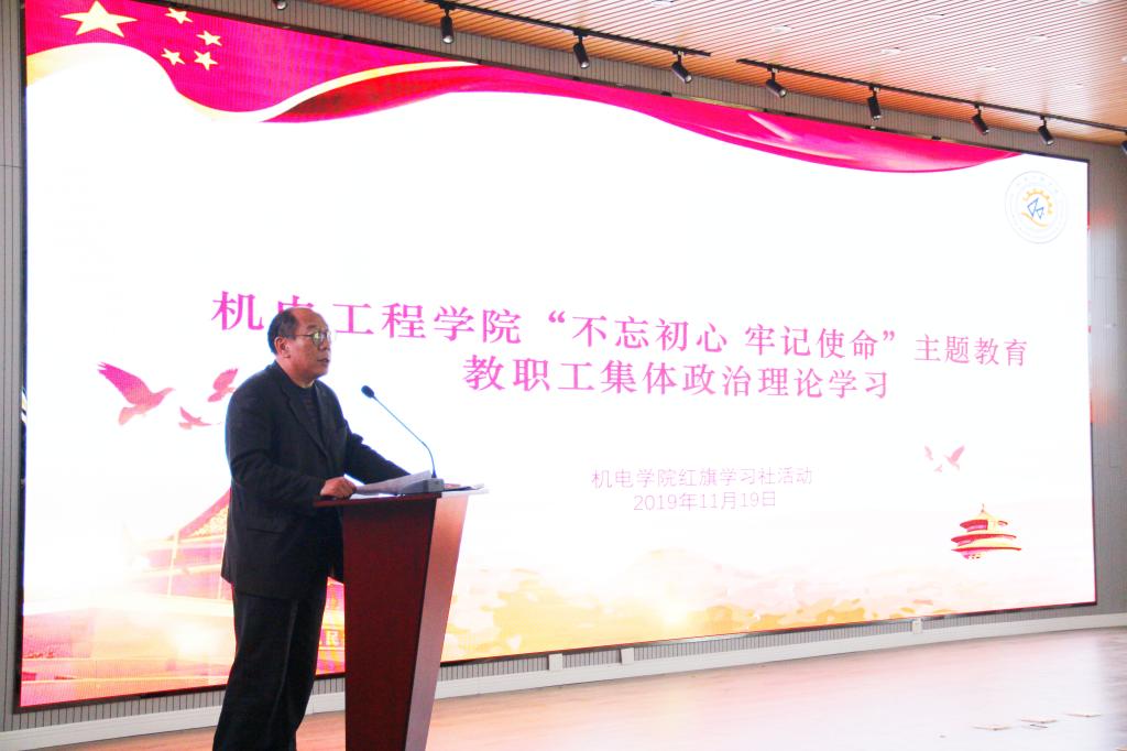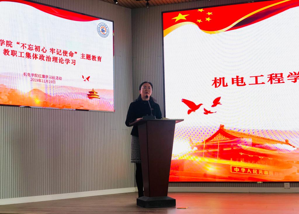 为深入推进学院“不忘初心 牢记使命”主题教育工作,切实提升学习效果,根据学校《关于加强和改进院级党组织理论学习中心组和教职工集体政治理论学习的通知》的要求,11月19日下午,3245澳门新莆京党总支组织开展教职工集体政治理论学习,此次学习活动是通过学院院长何燕进行专题报告会的形式开展,学院领导班子成员及全体教职工参加了学习,学习由学院党总支书记孙立军主持。