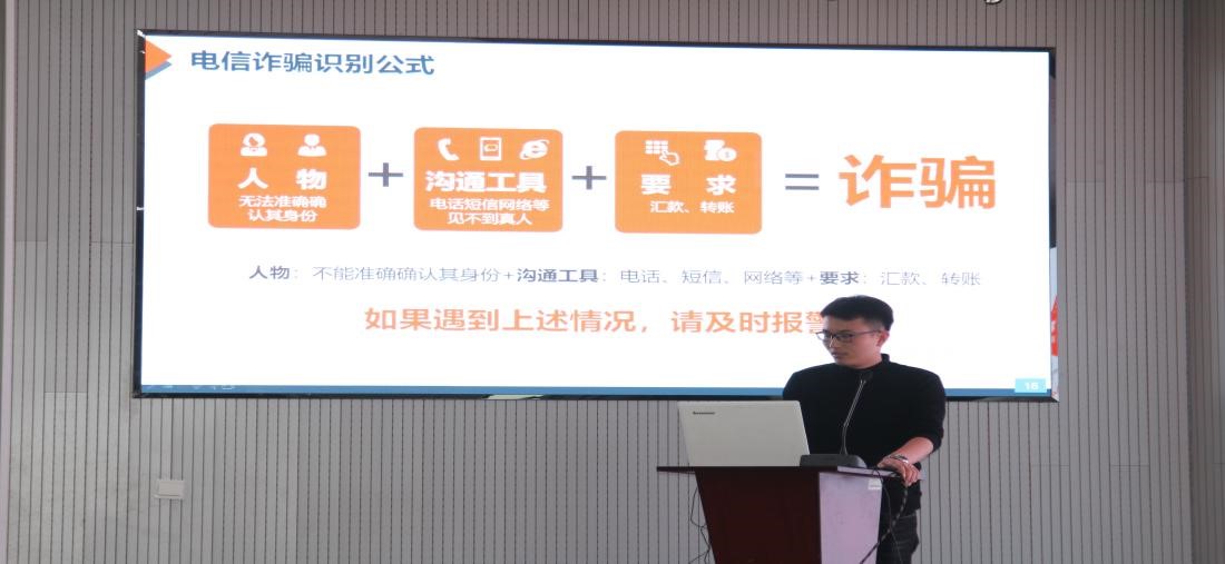 安全教育分为两个环节,第一环节以PPT和视频宣讲为主,研究生会生活部部长江峰结合近些年各大学里发生的案例,分别从宿舍安全、实验室安全以及网络安全三个方面进行了详细阐述,