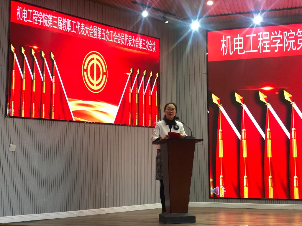 何燕向大会作了《解放思想 攻坚克难 不忘初心使命 潜心立德树人 全面推动学院各项事业行稳致远向前进》的工作报告。指出第三届教代会暨第五次工代会第二次会议以来,学院各方面工作取得了丰硕的成绩,学院党建、学生教育管理、教学管理等各项考核位居学校前列,学科建设取得重大发展,科研成果成就创历史性突破。3245澳门新莆京将始终高举创新发展的旗帜,在校党委、校行政的坚强领导下,以党建推动中心工作为宗旨,以智能制造统揽全局,凝心聚力,推动各项事业跨上新征程、迈上新台阶!