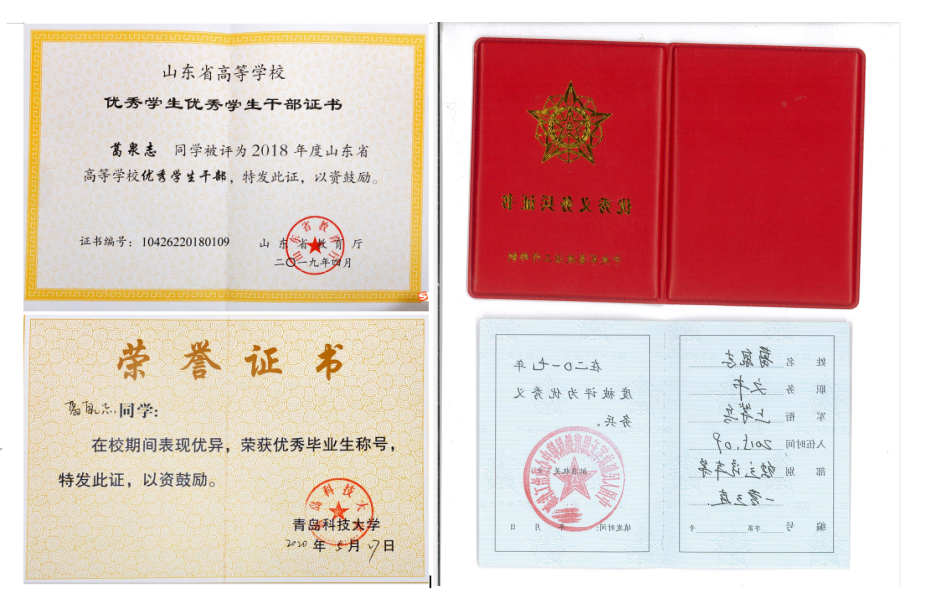 2018年 获山东省高等学校“优秀学生干部”荣誉称号;