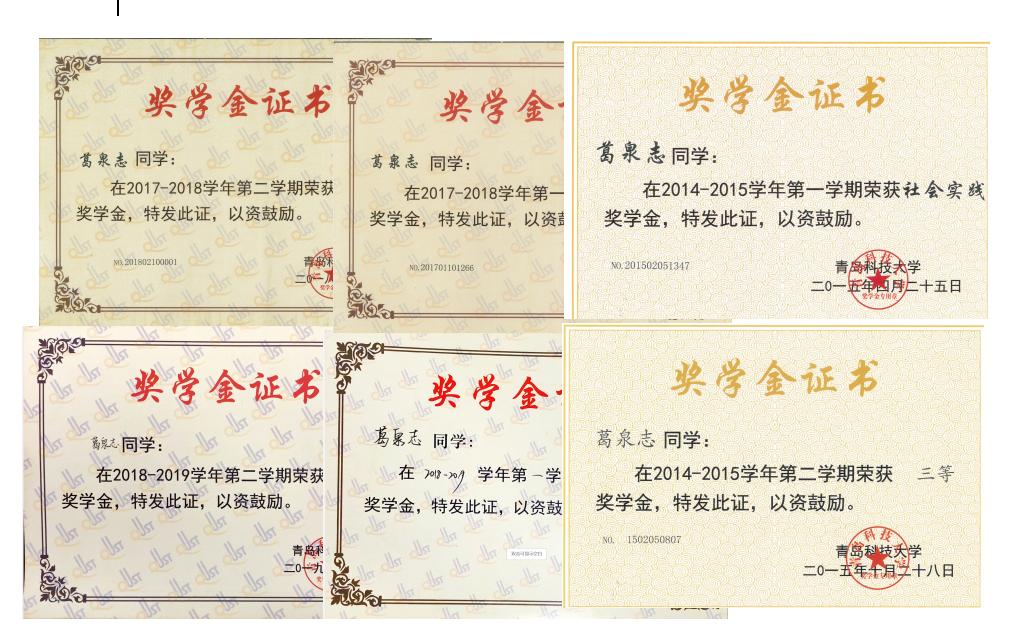 与此同时,葛泉志同学把在部队历练出来的耐心、钻研刻苦的精神用到学习上,跟着老师的思路培养自己的逻辑思维能力,善于思考,乐于钻研,学习成绩从班级第9名稳步上升至第5名,获学院“学习之星”荣誉称号、6次校三等奖学金,3次校社会实践奖学金。