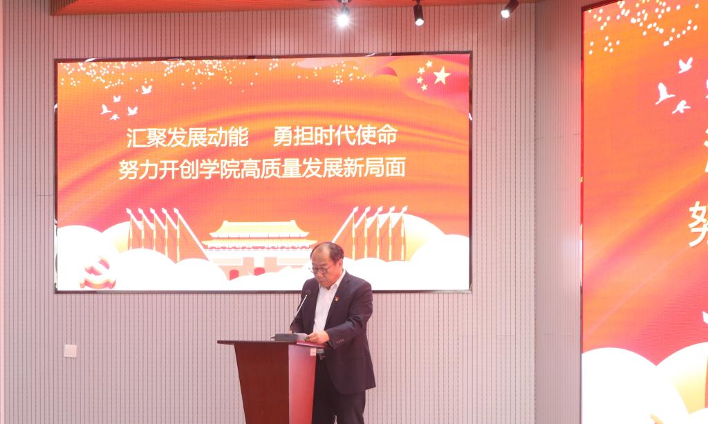 大会在庄严的国歌声中拉开帷幕。首先,院党委书记孙立军代表上一届党委向大会作题为《汇聚发展动能 勇担时代使命,努力开创学院高质量发展新局面》的工作报告。在报告中,孙立军书记全面回顾总结了本届党委的主要工作以及梳理了当前和今后一个时期的工作思路。