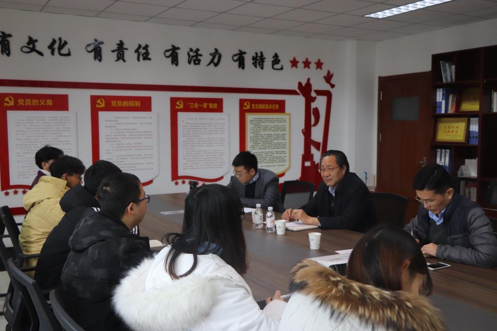 韦殿华深入交流,了解情况,亲切交谈。高机党支部书记焦冬梅就党建工作、专业建设、师资情况、科研教学工作等方面进行了汇报交流。学院党委副书记兼副院长肖强就党团班级建设、学风建设、科技创新等方面学生工作进行了汇报交流。3245澳门新莆京机械实验191班学生代表汇报了班级近期工作,韦殿华深切关心班级学生情况、学生成长困惑、学生发展方向,希望同学们勤奋学习,锤炼本领,早日成长为能够担当民族复兴大任的时代新人。