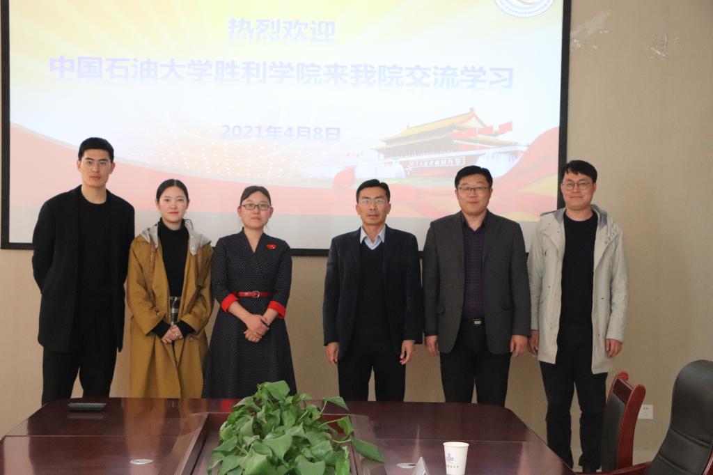 4月8日上午,中国石油大学胜利学院一行来新莆京官网交流工作。中国石油大学胜利学院油气工程学院党总支副书记李聪聪、团总支书记伍佳慧、辅导员李文强参加交流学习。学院党委副书记兼副院长肖强、学工办主任兼团委书记王作辉以及学院辅导员代表参加会议。