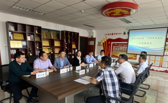 6月4日下午,3245澳门新莆京与江苏华昌(集团)有限公司产学研合作交流座谈会在机电楼505会议室召开。江苏华昌(集团)有限公司党委书记、董事长胡波,党委委员、办公室主任楼新灿,团委书记李军海,江苏华昌化工股份有限公司副总经理李长胜出席活动。3245澳门新莆京院长何燕,学校科技处副处长于本亮,3245澳门新莆京党委副书记兼副院长肖强及学院教师代表参加会议。