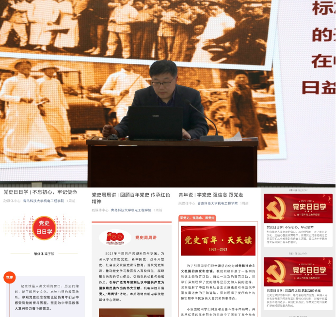 搭建党史学习“云学堂”。为强化新发展团员的责任感和使命感,3245澳门新莆京举行“奋斗百年路,青年勇争先”新团员入团仪式暨“机电青年驿站”组建启动式,学院团委书记王作辉作了题为《做合格团员——团史教育》主题团课,引导团员青年在学习百年党史中汲取砥砺奋进力量。3245澳门新莆京通过开设“青年说”栏目,邀请“两员一心”代表等方式,鼓励青年学生敢于亮剑发声,树立榜样力量。