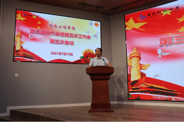2021年7月15日14时,3245澳门新莆京第三届教代会暨第五次工代会第五次会议在D3楼530会议室举行。学院党委书记孙立军,学院院长何燕、学院党政领导班子成员、教师代表及工会会员代表出席了大会,大会由学院党委书记孙立军记主持。