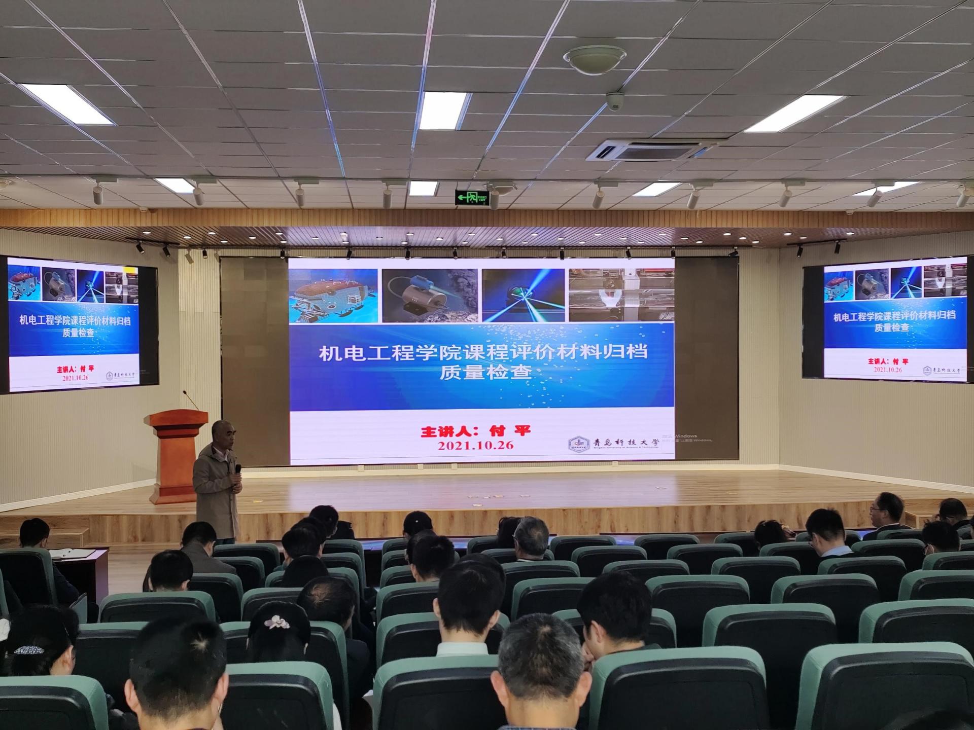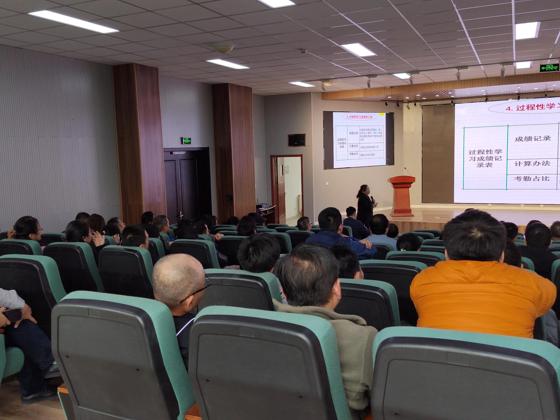 10月26日下午,学院以全院教职工大会为契机,组织全体教师开展了课程评价材料归档培训。会议由李剑光副院长主持,教务处质量科郭韶升老师和学院评建办主任付平老师分别作了专题报告。