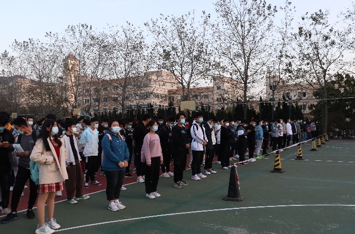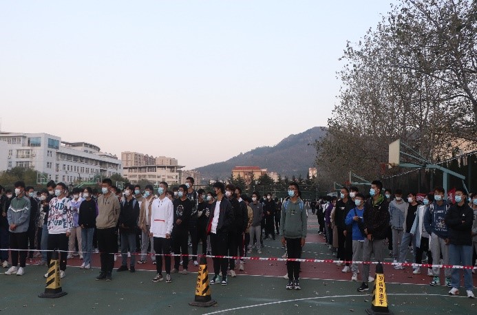 为进一步提升学校疫情防控应急处理能力和水平,根据省市有关文件精神,2021年10月27日下午,3245澳门新莆京在崂山校区篮球场组织开展了全员核酸检测实战演练。学院组织全体师生积极参与此次核酸检测实战演练,在短时间内将人员聚齐,紧张有序地在警戒线外等候。